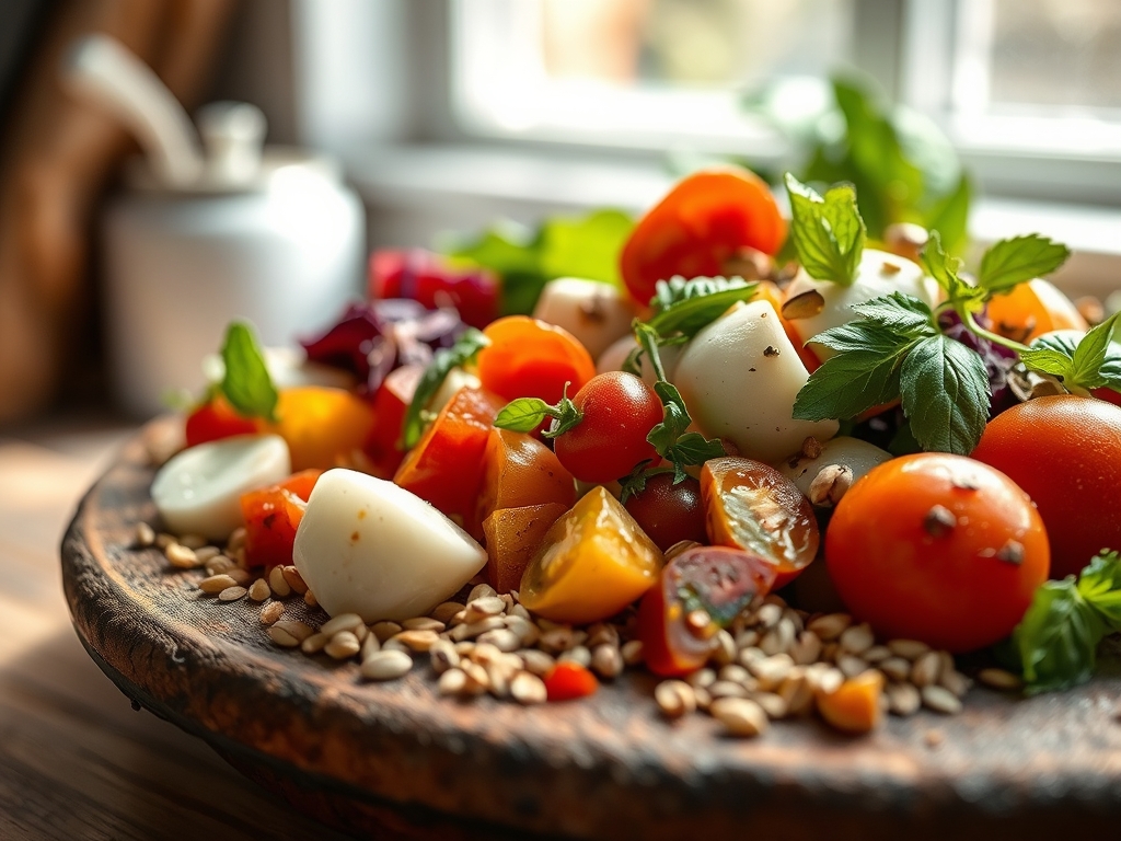 Variaciones Dieteticas: Para una version vegana, sustituye la mozzarella por un "queso" de anacardos fermentado, el cual replica la cremosidad y el perfil de acido lactico. Para seguidores de la dieta Keto, esta receta es ideal tal cual, solo evita el uso de reducciones de balsamico comerciales que suelen tener azucares añadidos.